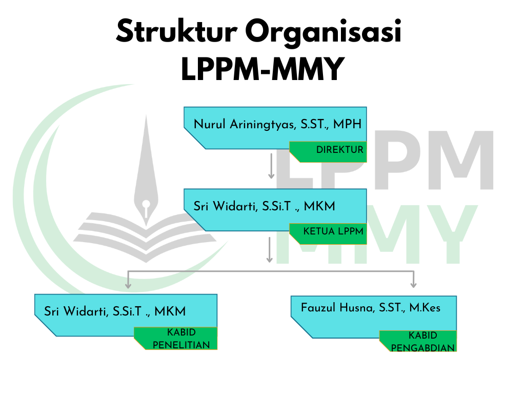 Lembaga Penelitian dan Pengabdian Masyarakat (LPPM) Akademi Kebidanan Mulia Madani Yogyakarta terbentuk sejalan dengan berdirinya Akademi Kebidanan Mulia Madani Yogyakarta pada tahun 2008. Lembaga ini mengkoordinir pelaksanakan dua kegiatan yang ada di Akademi Kebidanan Mulia Madani Yogyakarta, yaitu kegiatan Penelitian dan Pengabdian Masyarakat. Lembaga Penelitian dan Pengabdian Masyarakat (LPPM) Akademi Kebidanan Mulia Madani Yogyakarta membawahi dua bidang, yaitu Bidang Penelitian dan Bidang Pengabdian Masyarakat.